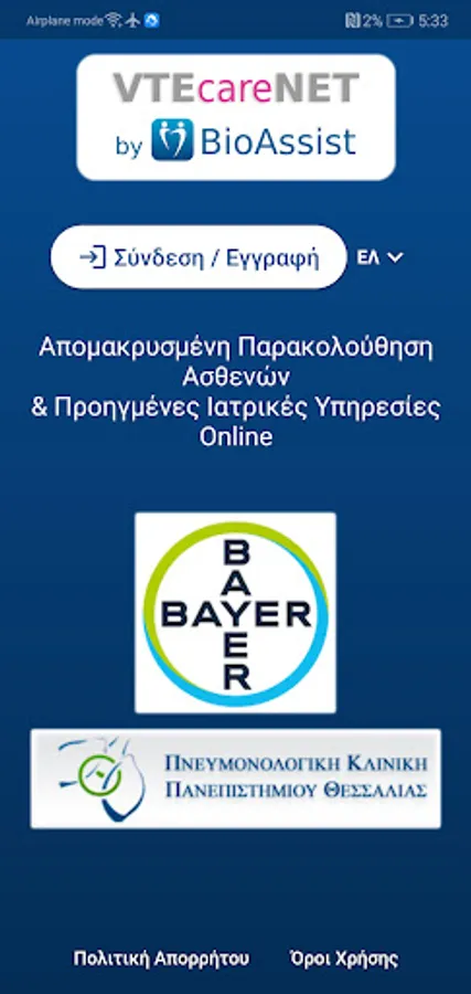 The app provides a set of innovative digital healthcare services in the context of the VTEcareNET programm.