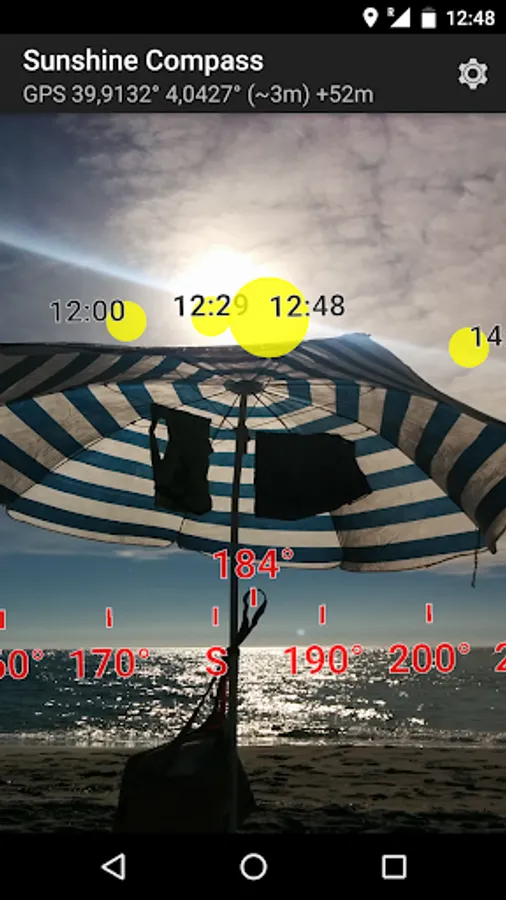 Please note that Sunshine Compass is limited by the integrated sensors of your Android device. Some devices may not have sensors with a satisfying accuracy. Sensors may be disturbed by objects nearby. You usually get the most accurate results when you are outdoor.