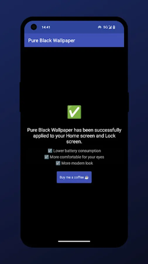 Pure Black Wallpaper is an app that turns the background of your home screen and lock screen completely black. This makes it more comfortable for your eyes and reduces battery consumption.