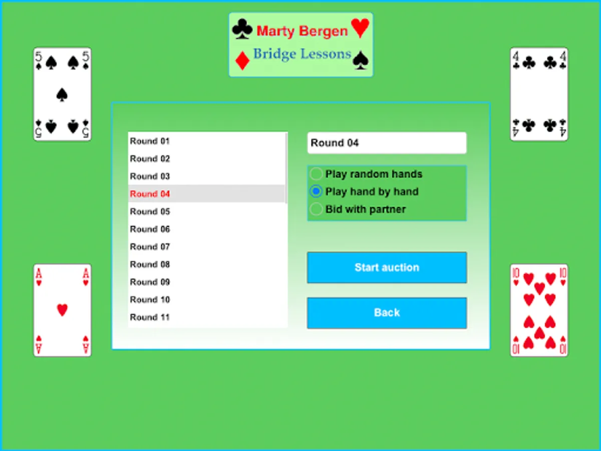 "Bid with Bergen" is an innovative, instructive and convenient fun way for players of all levels to improve your bidding and partnership. It provides an opportunity to bid 150 pairs of hands with a partner and/or on your own and to get immediate expert feedback on how you did and suggestions on how you could do even better. No matter where you are or how much time you have, it is a perfect way to spend that time with your favorite game.