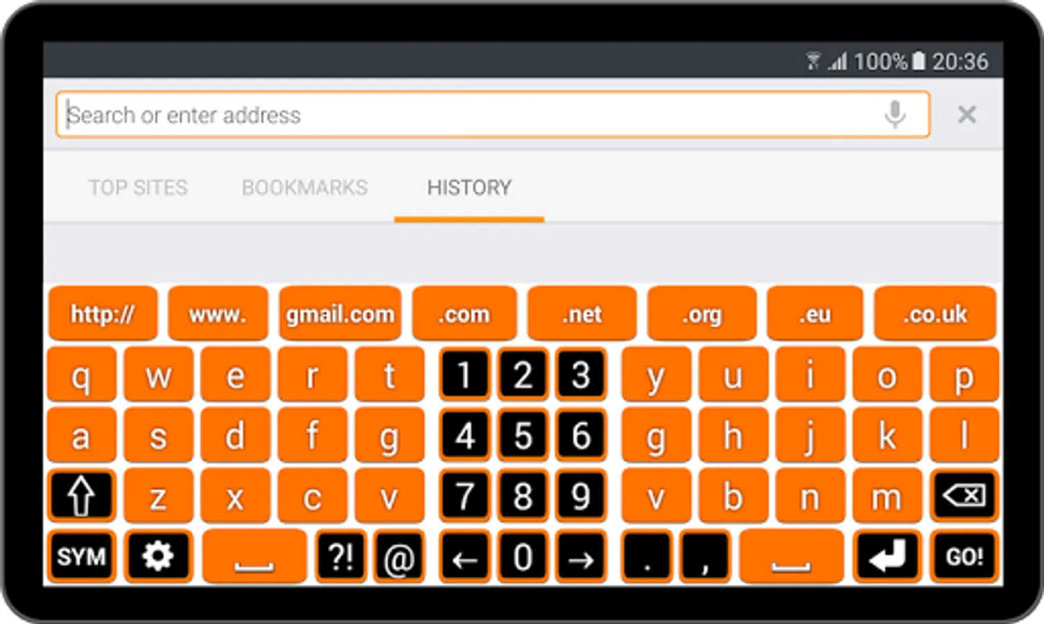 One of the best features of Orange Keyboard is the ability to customize the keyboard's layout to your preference. You can choose the format of the keyboard when it's on landscape orientation, either to the normal keyboard or the two-hand keyboard format. Additionally, the background color of the keyboard can be easily changed from the settings, giving you the freedom to change your keyboard style any time you want.