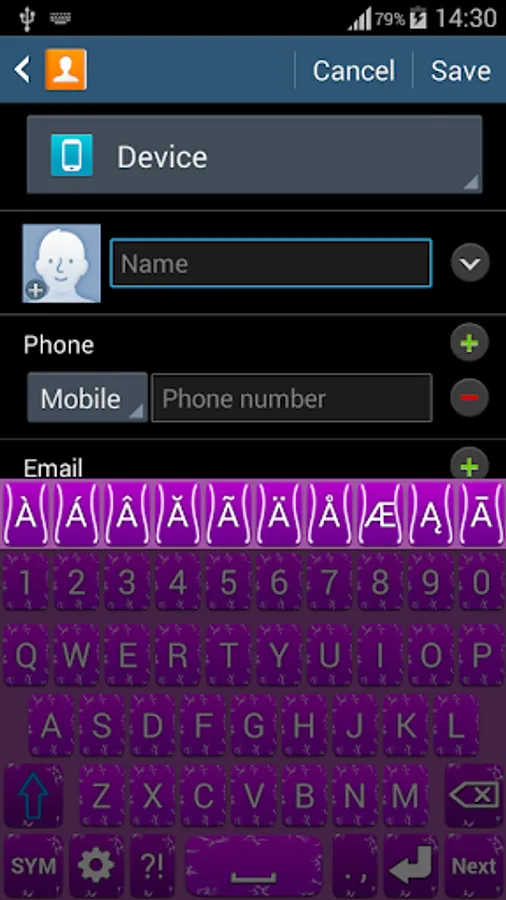 Please note that Purple Keyboard currently supports only Latin languages, including English, French, German, Portuguese, Spanish, and more.
