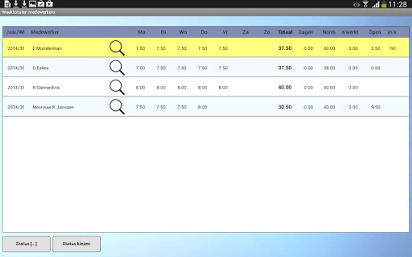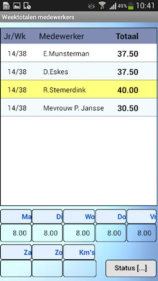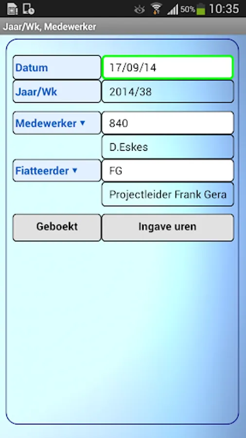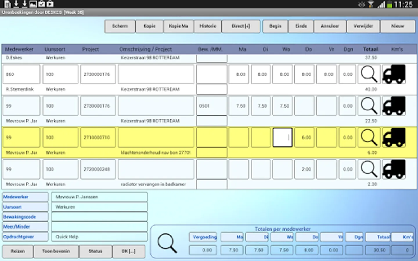 The ALERT Uren32 app's tablet is aimed at a project manager records the hours of several employees per week, although entry per day or possible only own hours of the employee.