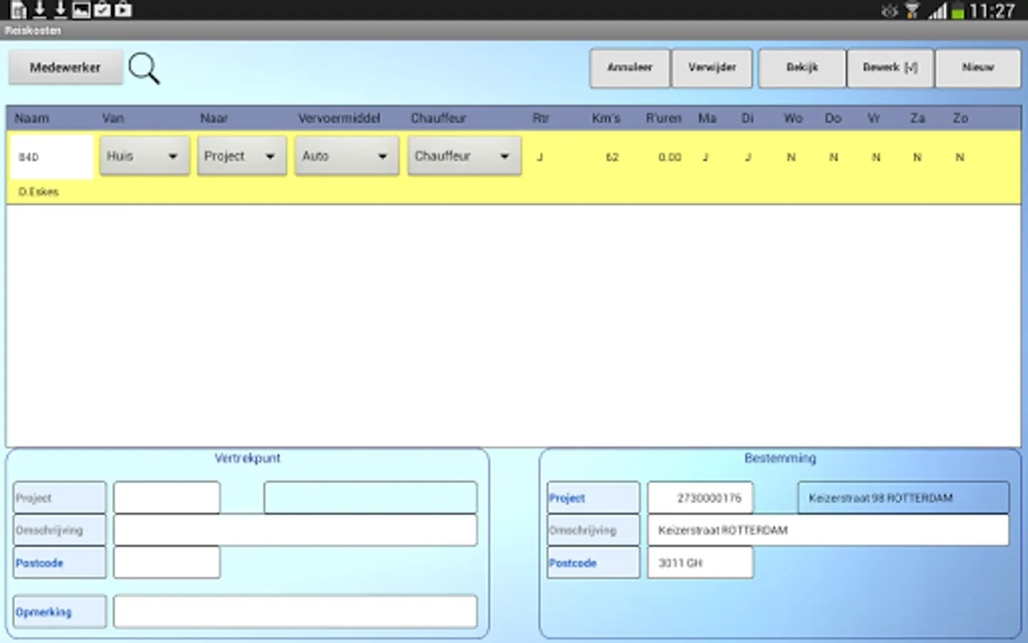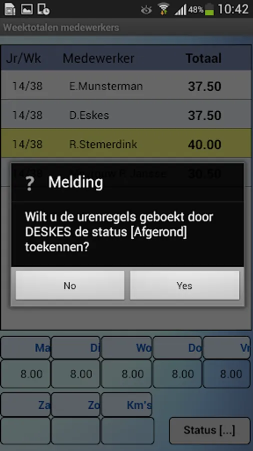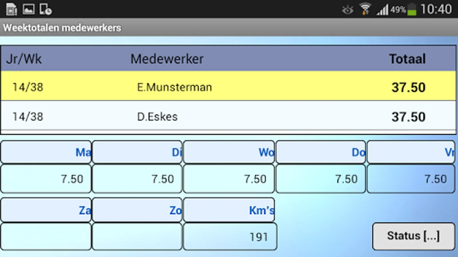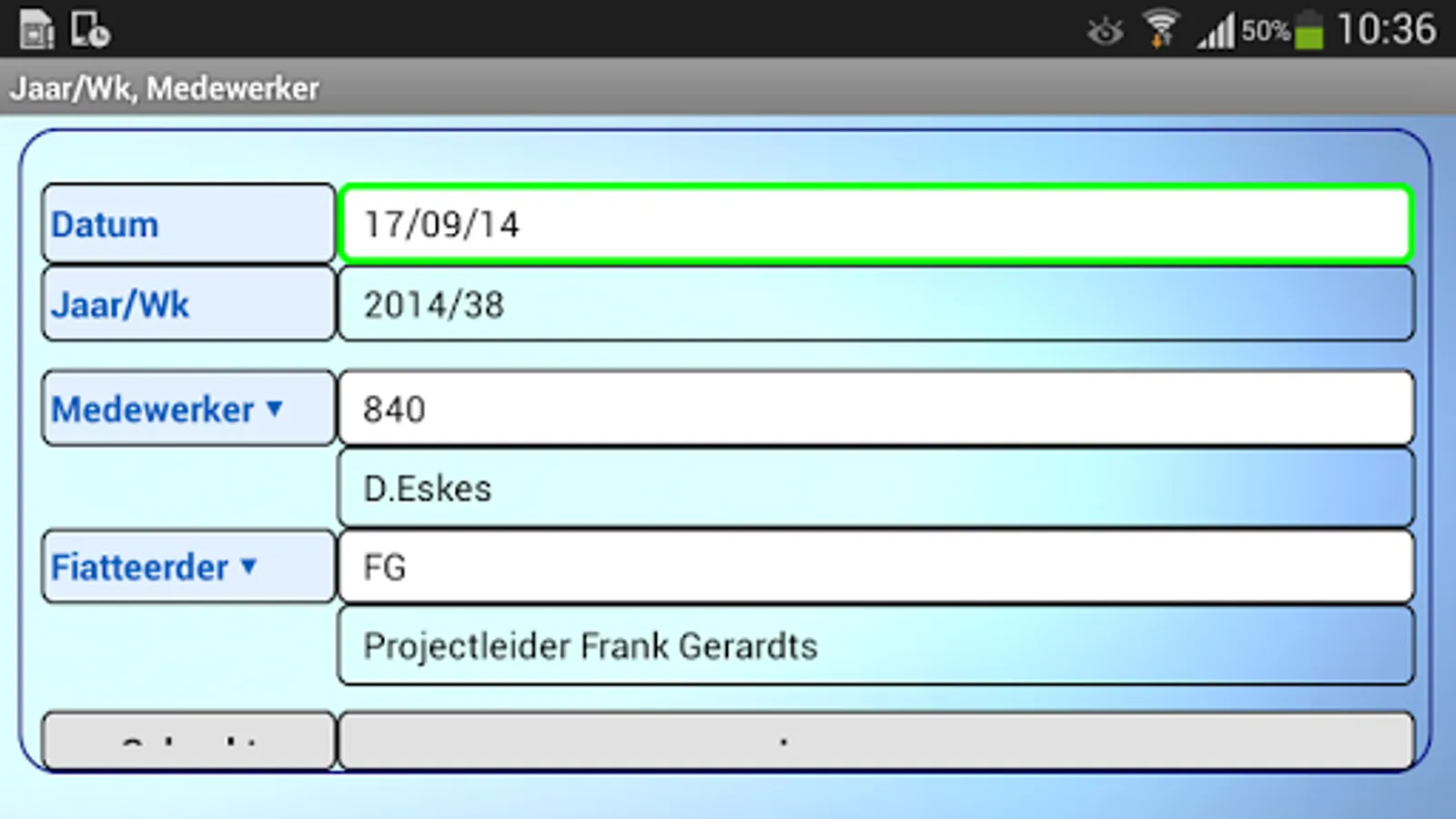 The ALERT Uren32 app's tablet is aimed at a project manager records the hours of several employees per week, although entry per day or possible only own hours of the employee.