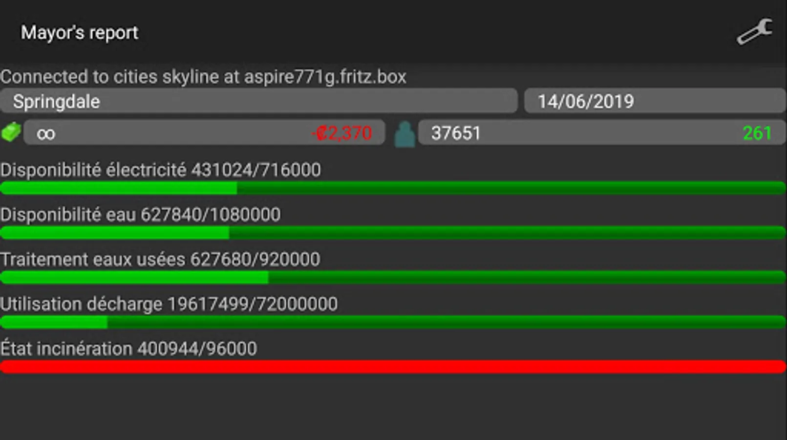 Mayor's report is a companion for the Cities: Skylines(c) game. It will report important statistics about your current city in real-time on your android device.