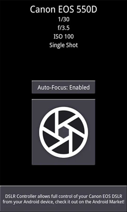 Remote Release allows you to "remote release" your Canon EOS DSLR from your Android device with only a USB cable.