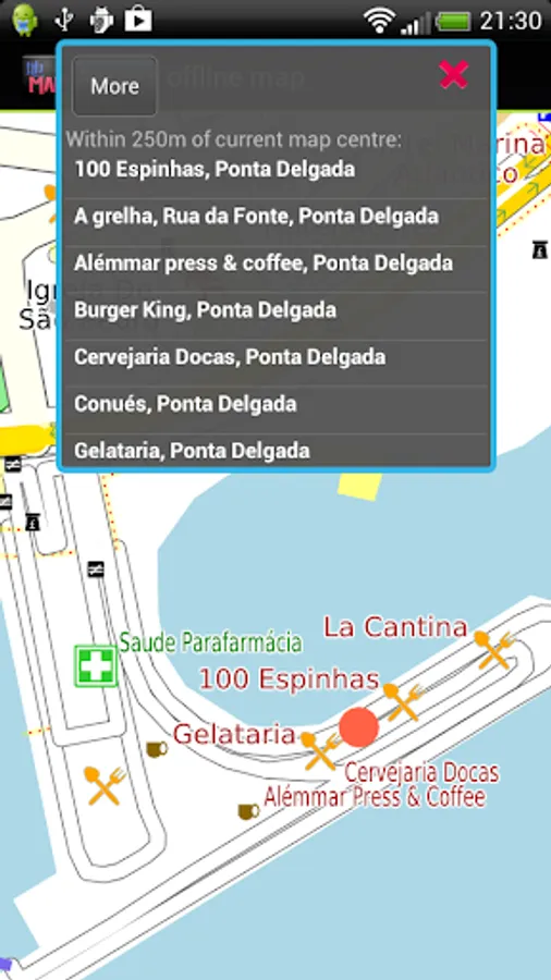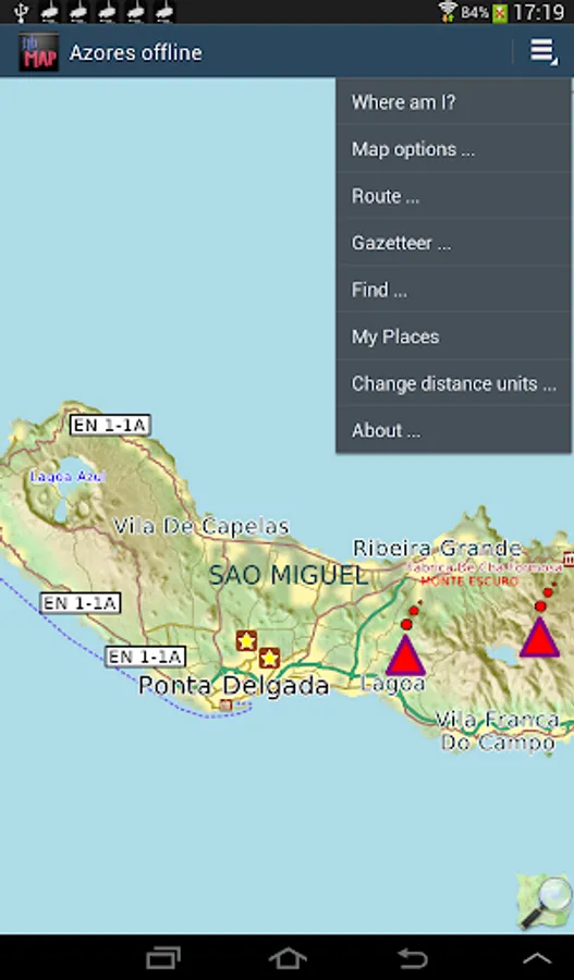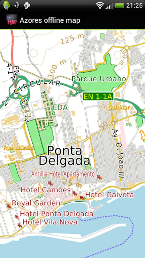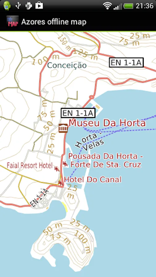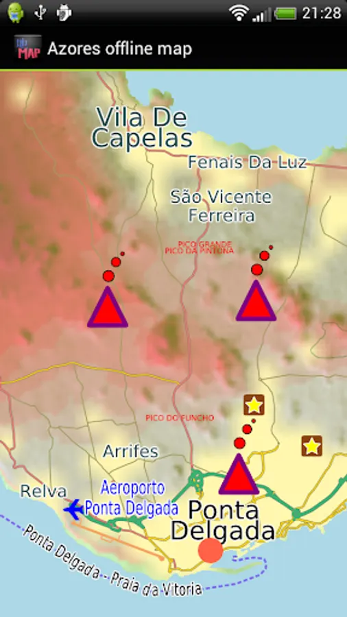 Offline map of the island of the Azores/Açores for tourist & business visitors. Download the app before you go or using your hotel's Wi-Fi and avoid expensive roaming charges. The map runs completely on your device; map display with pan and zoom, routing, searching, everything. It does not use your data connection at all. Switch your phone function off if you want to.