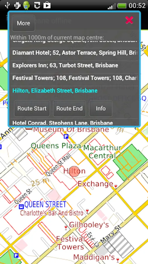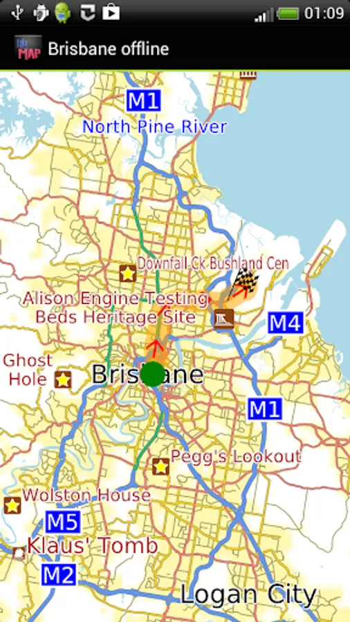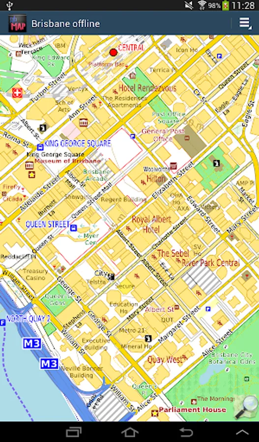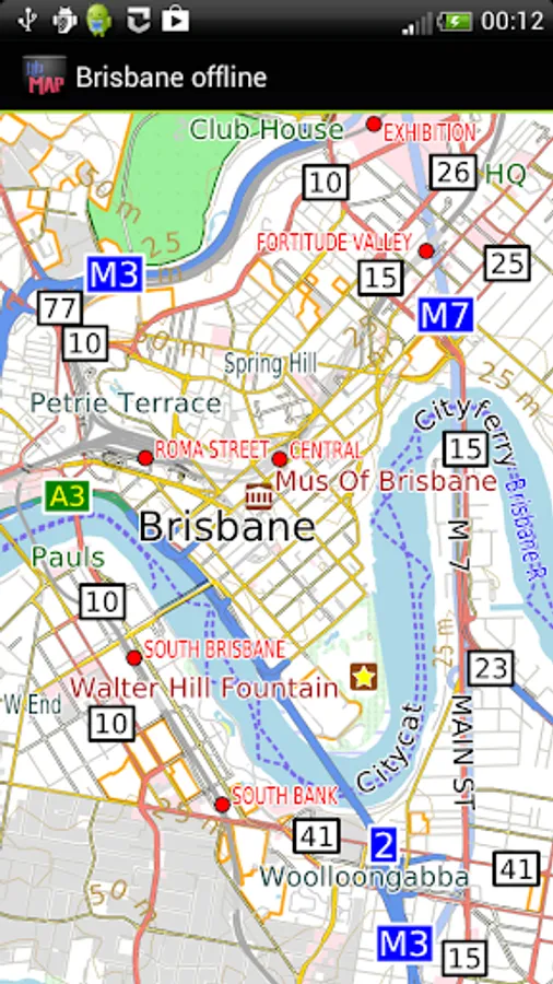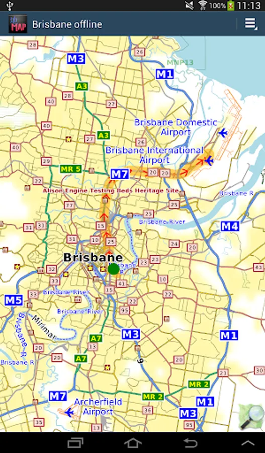 Offline map of Brisbane, Queensland, Australia and surrounding areas for business and tourist visitors. Download before you go or using your hotel's Wi-Fi and avoid expensive roaming charges. The map runs completely on your device; map, routing, search, bookmark, everything.