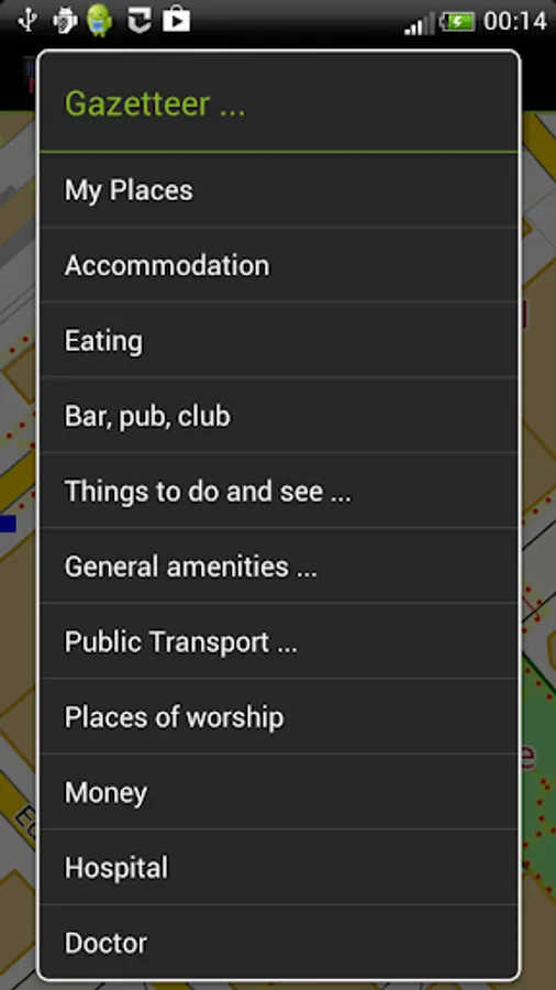 The app includes a search function and a gazetteer of commonly needed items like hotels, eating places and pharmacies as well as museums and other things to see and do.