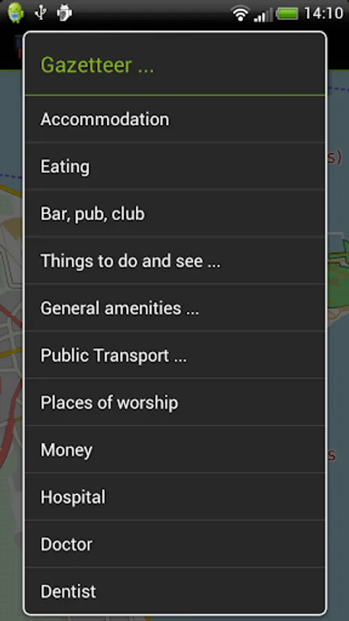 The app includes a search function and a gazetteer of commonly needed items like hotels, eating places, post offices and pharmacies as well as museums and other things to see and do.