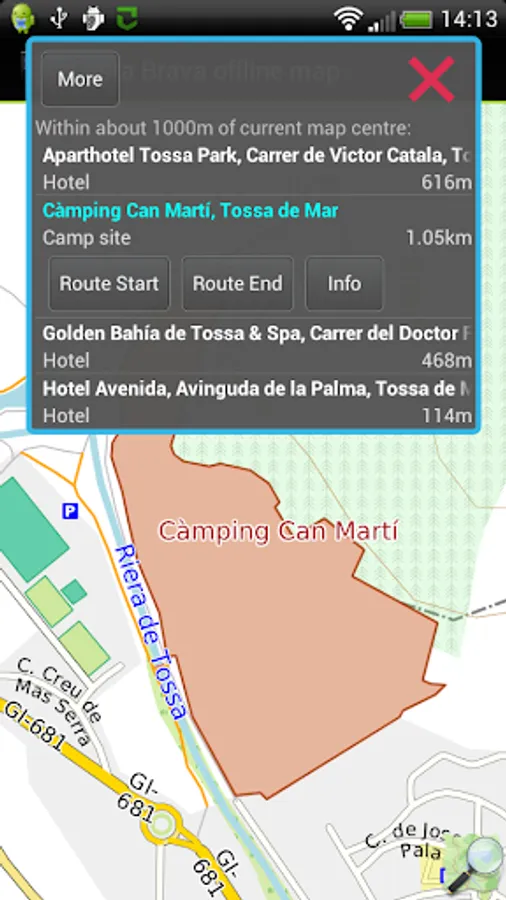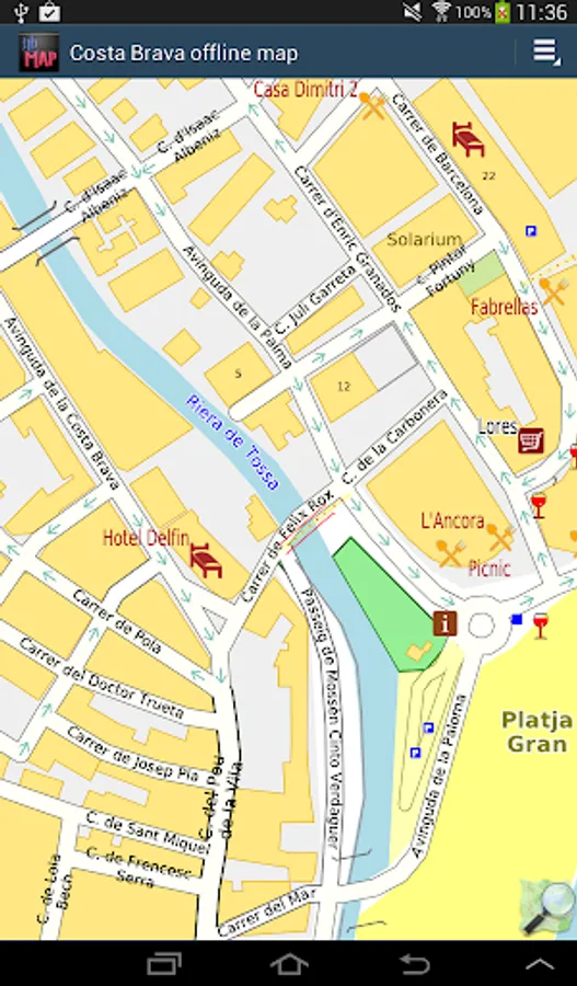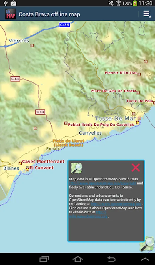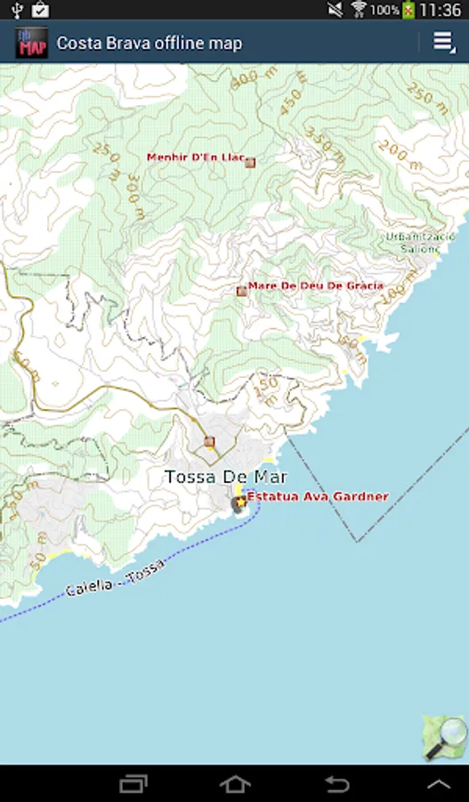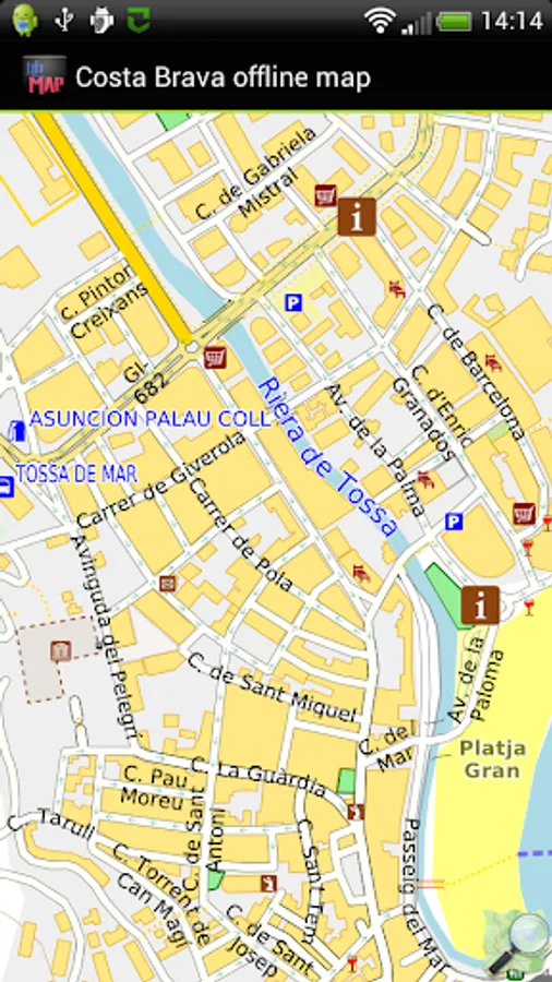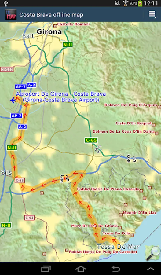 Offline map of the Costa Brava resort coastline of Spain for tourist & business visitors. Download before you go and avoid expensive roaming charges. The map runs completely on your device; map, routing, search, bookmark, everything.