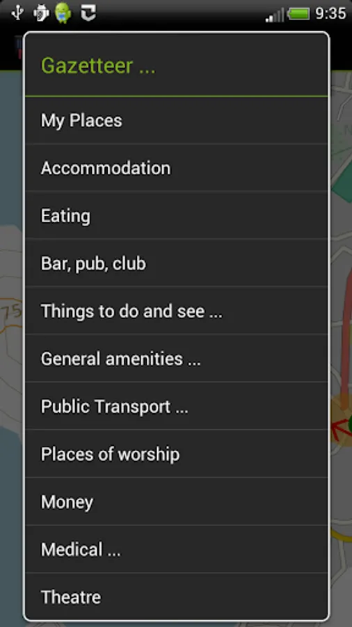 * display gazetteer lists of commonly needed places like hotels, eating places, shops, banks, things to see and do, golf courses, medical facilities. Show how to get there from your current location.