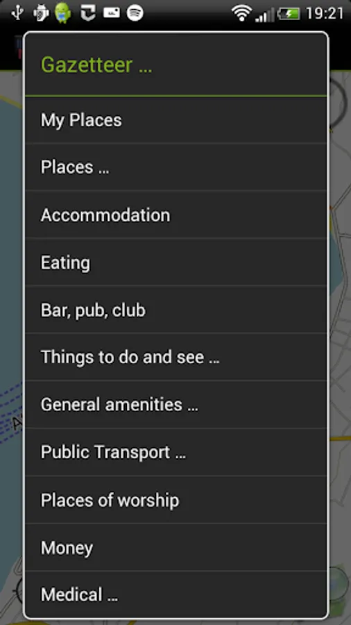 * display gazetteer lists of commonly needed places like hotels, eating places, shops, banks, things to see and do, golf courses, medical facilities. Show how to get there from your current location.