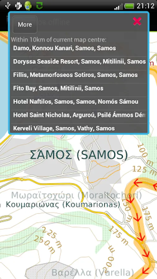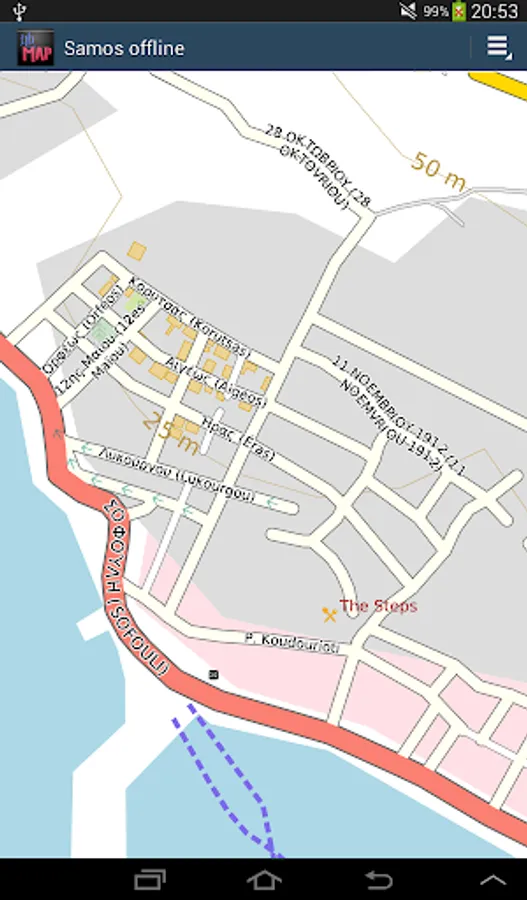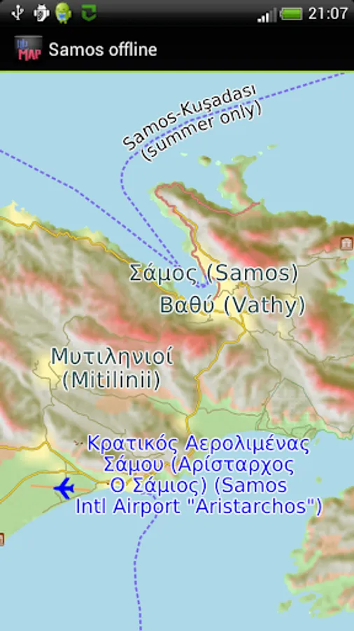 How good is the data? OpenStreetMap coverage of Samos is fair. Place names, road and street coverage appears very complete but many street names are still missing. The airport and ferry terminals are mapped. Things to do and see are reasonably covered. Amenities such as hotels, eating places, supermarkets are still thin. Tracks, footpaths and other amenities such as medical facilities are sparse. Mapping of Ikaria and other islands is less advanced but improving. We publish free app updates with new information.