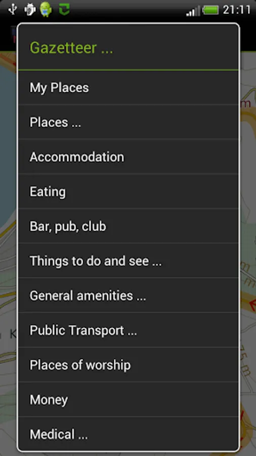 * display gazetteer lists of commonly needed places like hotels, eating places, shops, banks, things to see and do, golf courses, medical facilities. Show how to get there from your current location.
