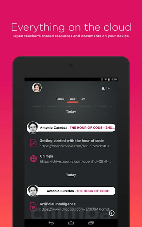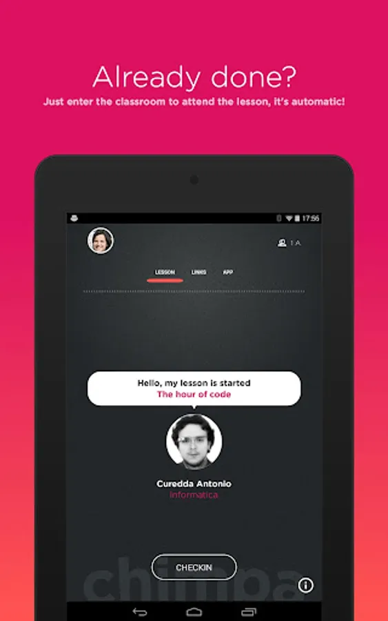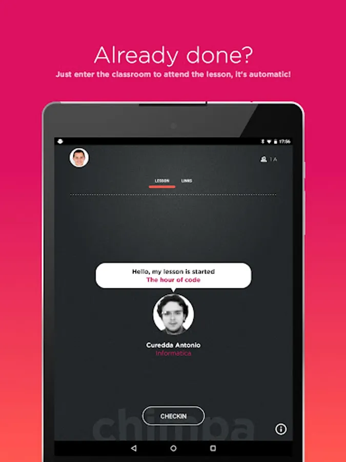 Chimpa Learn allows users to automatically join (via iBeacon® - Bluetooth 4.0) and take part in classes with countless useful features.