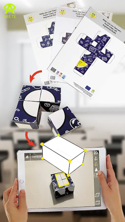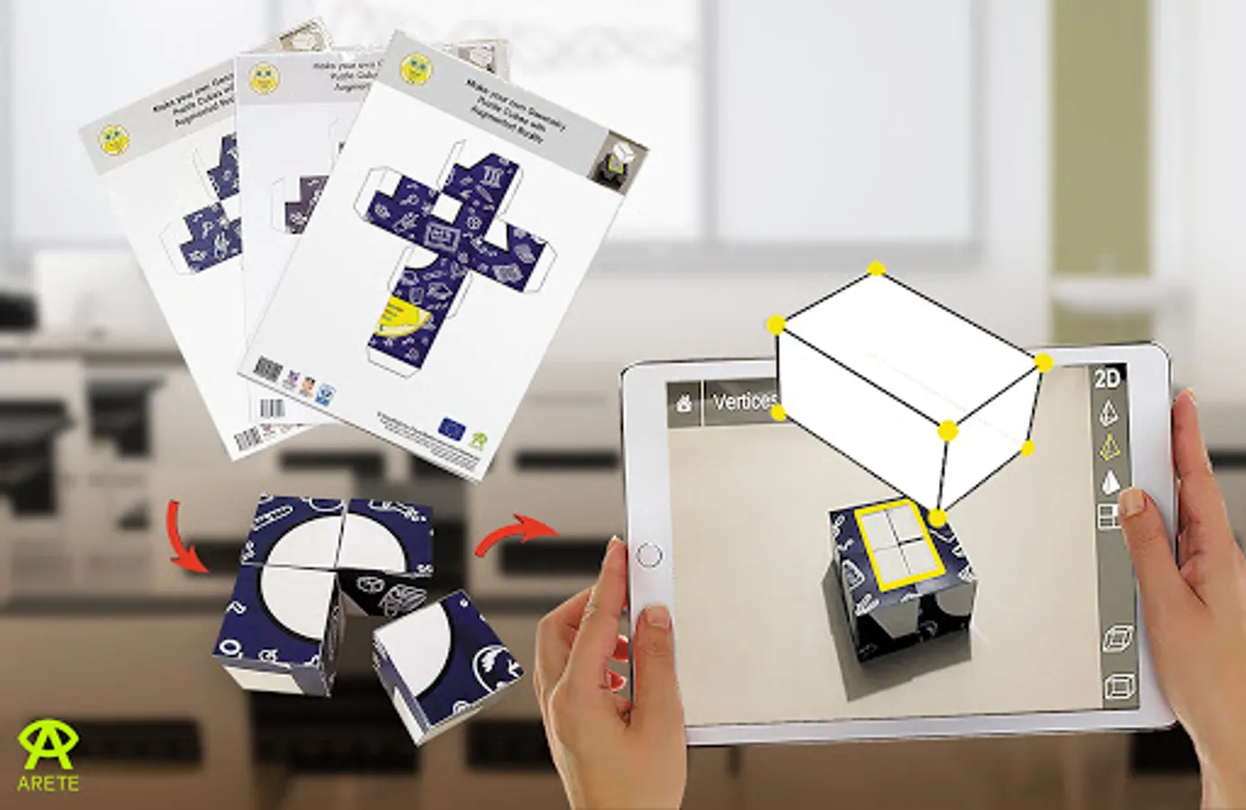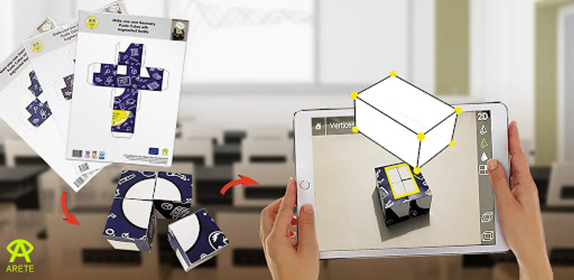ARETE Geometry features 3D models of five main 2D-dimension geometrical shapes (circle, rectangle, cube, hexagon and triangle) and enables a teacher to explain abstract geometry concepts through 3D visualization. The solution supports teamwork and collaboration.