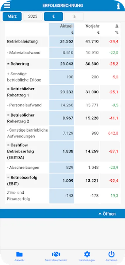 The app uses access to your secure ADDISON OneClick set up by us and converts the data provided there into a mobile business evaluation. This means that you have your company figures available much more quickly and at any location where there is an Internet connection.