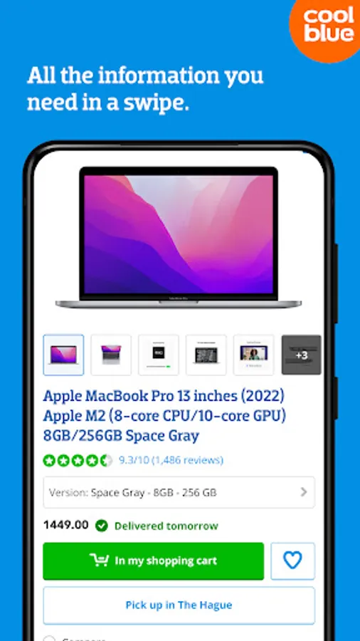 In the Coolblue app, you can easily find the best products for you. For example, you can compare properties and read reviews.