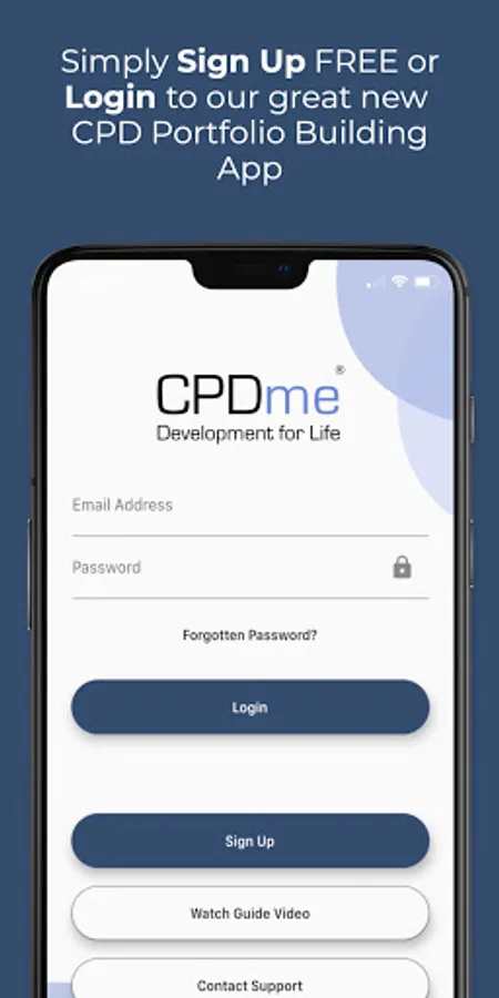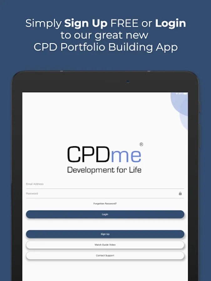 - Login to the mobile app as an existing member of CPDme to capture your development on the move.