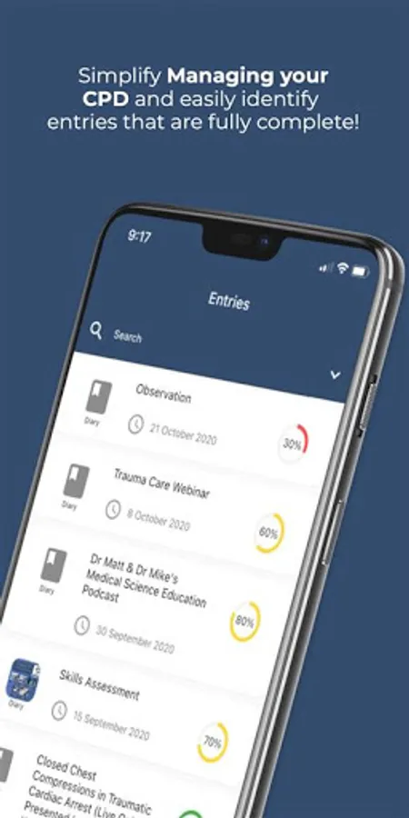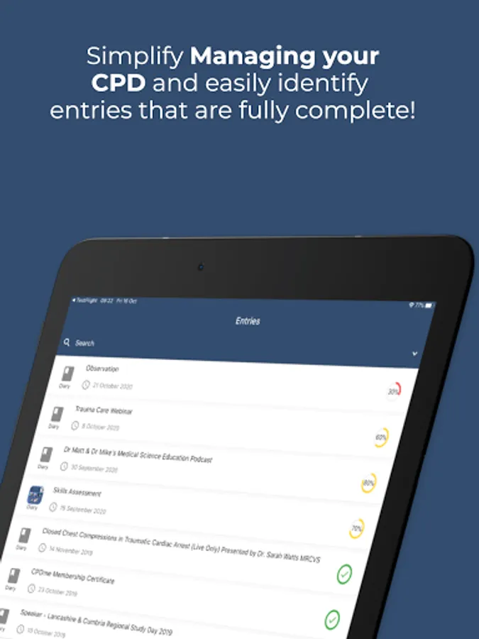- View percentage completion for each of your entries as well as the number of CPD hours for each entry.