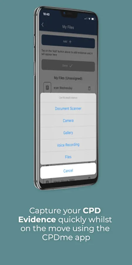 - Add to “My Files” CPD Evidence Store
