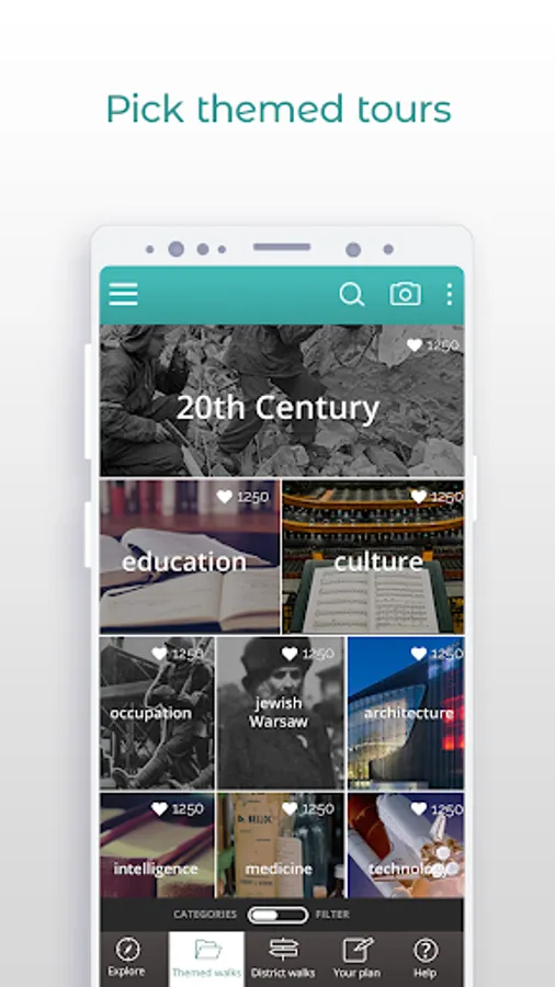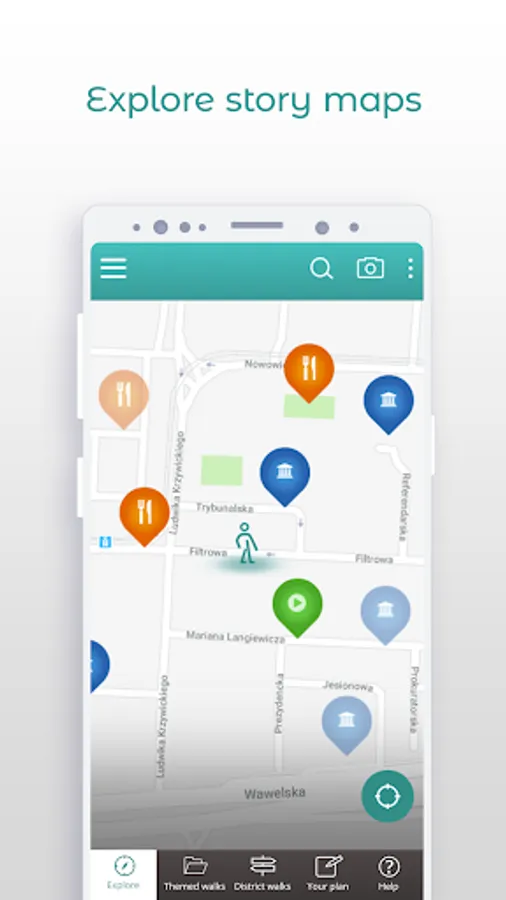 Filter all available stories by theme, district, object type or by distance from your current location.