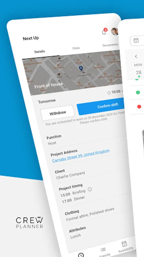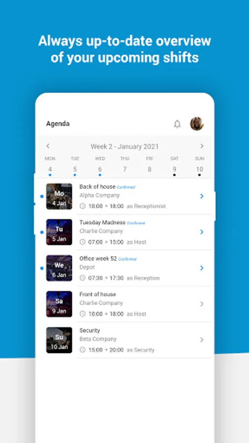 With this application, employees can consult their calendar, pass on availability and arrange all other things that can also be edited via the employee portal.