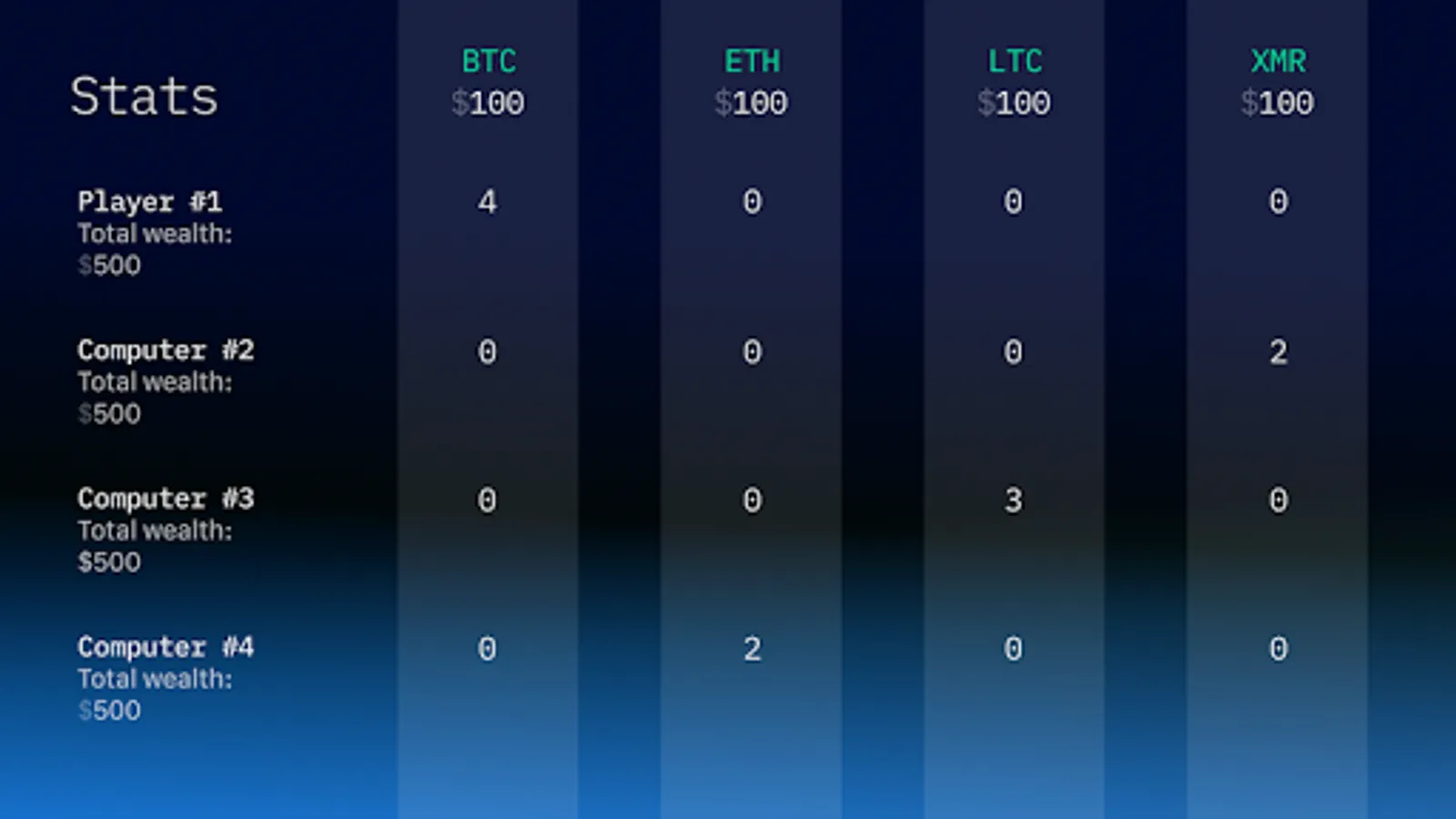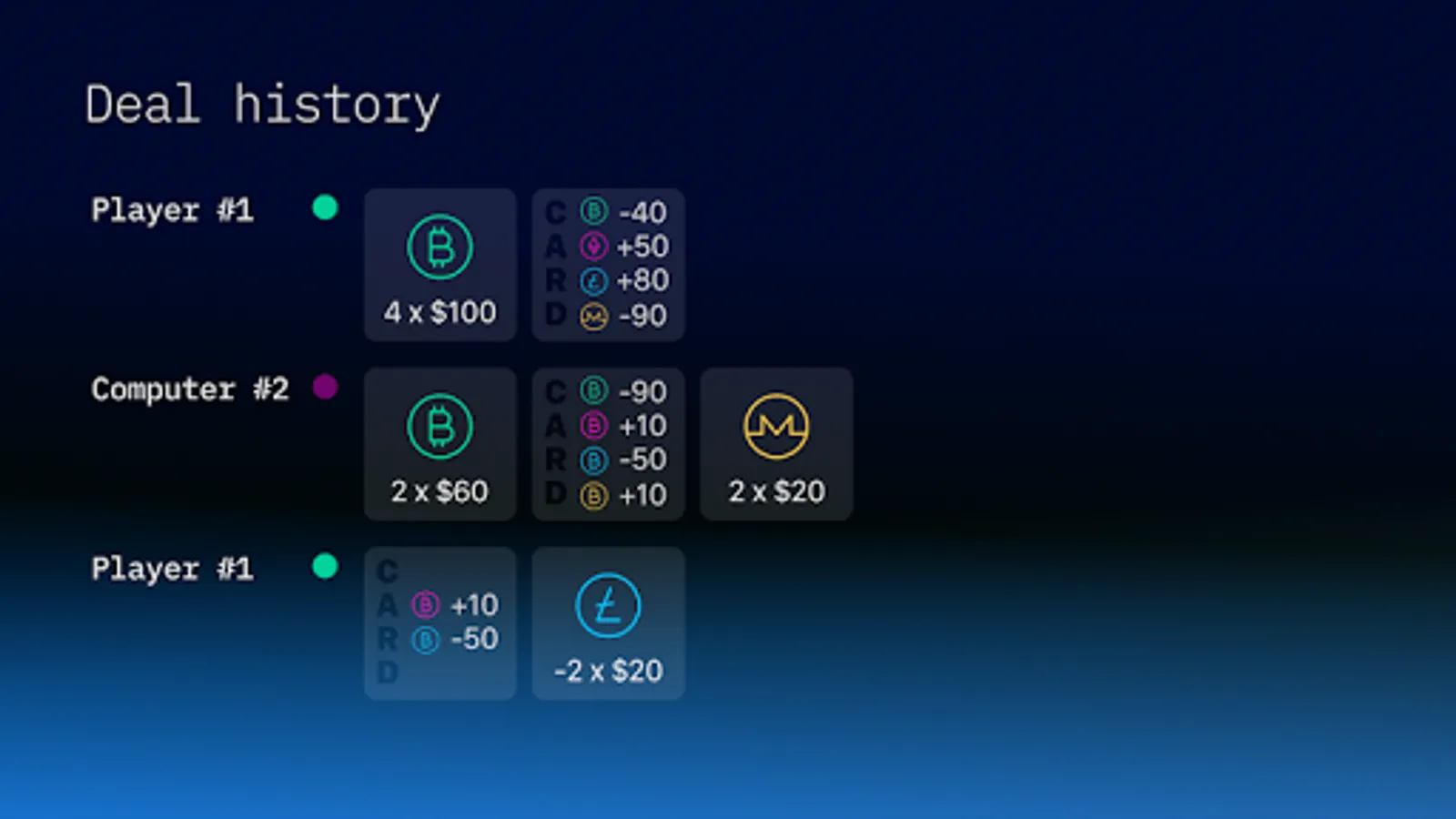 WunderTrading Millionaire is a fun tabletop card game that emulates real life cryptocurrency trading. As a player you will buy and sell bitcoin, ethereum, litecoin and monero. Use your cards and strategic powers to outsmart your opponents and become the richest player at the end of the game!