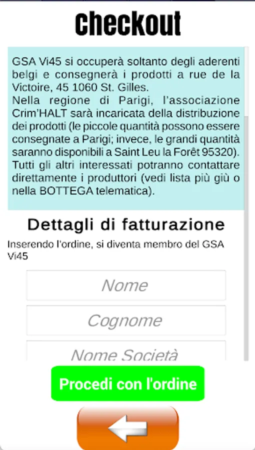 We will forward your orders to the Cooperativa Agricola Terre Grecaniche, which will make a grouped shipment to Brussels. The products ordered will then be available at Vi45 (Vi45, rue de la Victoire 45, B 1060 Brussels).