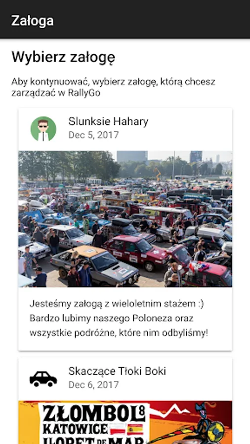 Application RallyGo (formerly ZłomekGO) is an application designed for individuals, teams or groups who are traveling, take part in rallies, races and many other forms of group or personal rivalry against sports.