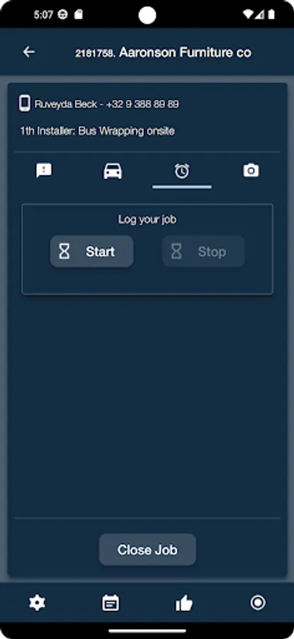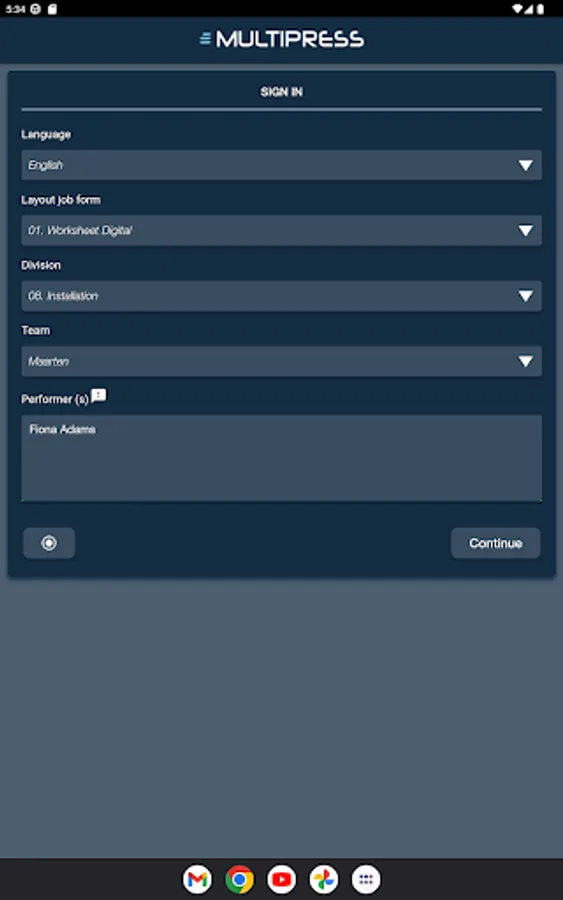 The time worked is recorded on site with the start/stop timer. The app sends the data in real time to the MultiPress system.