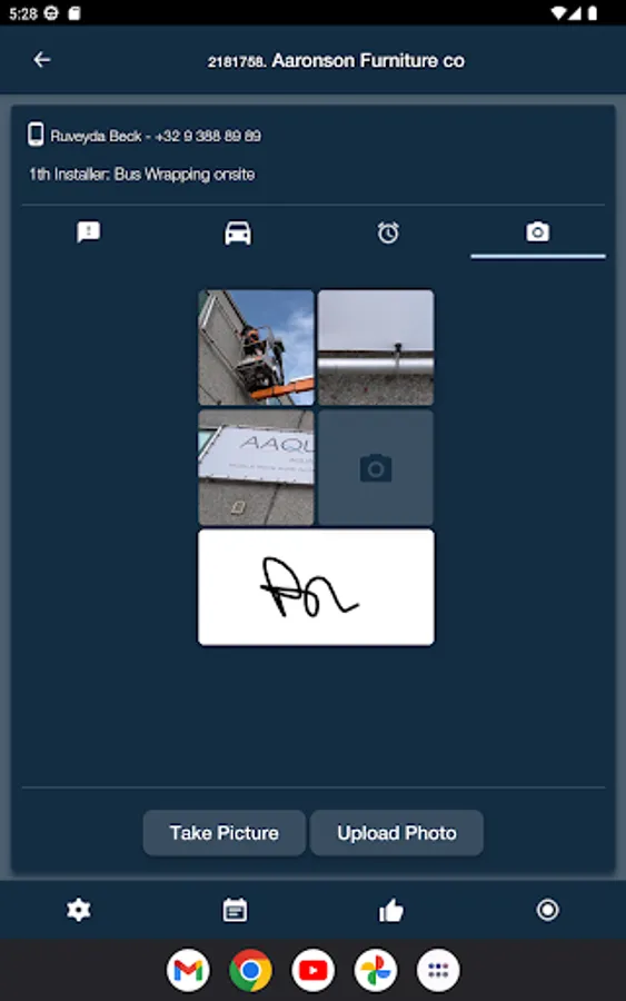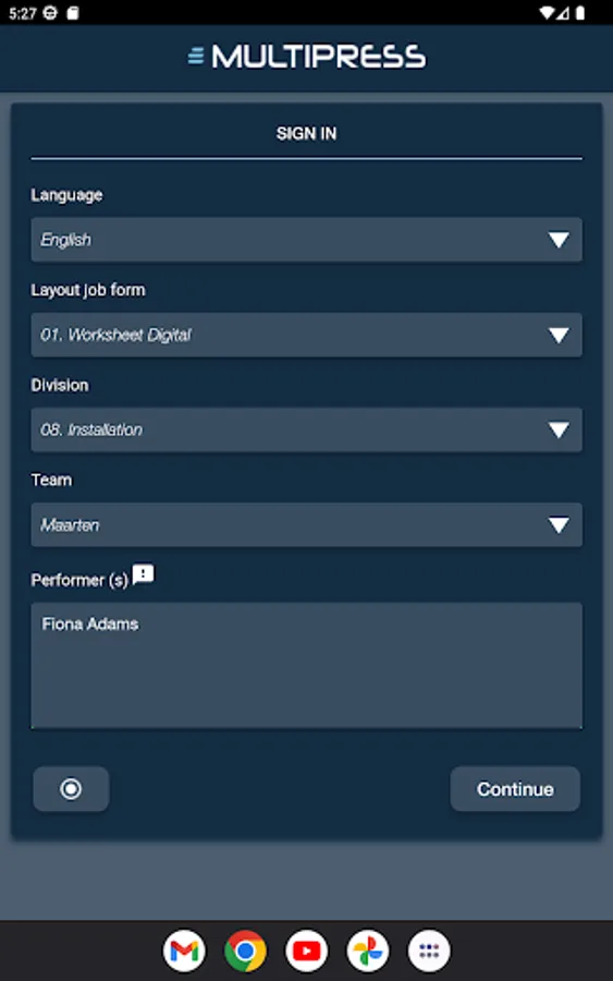 You can upload photographs of the delivered work directly into the app. There they are added to the right project in MultiPress, which simplifies remote quality control.