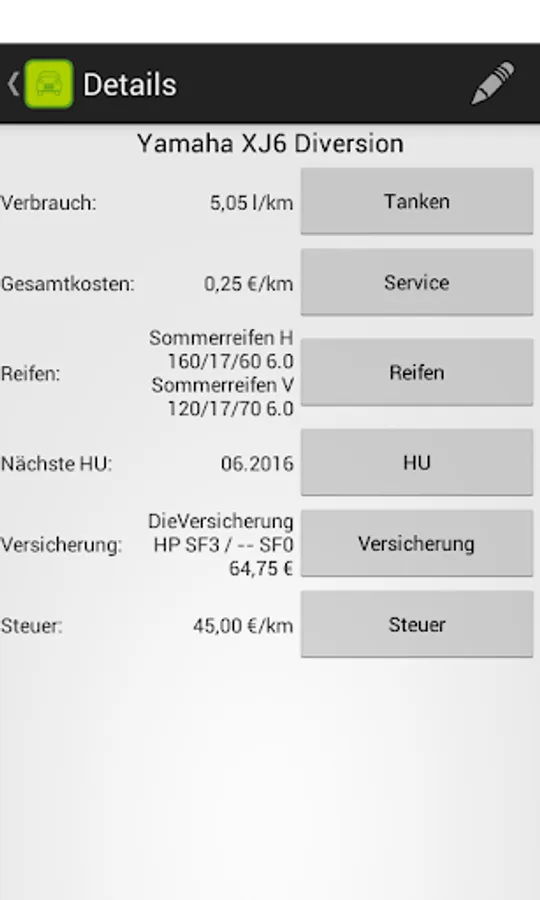 Keep all important information of cars, motorbikes, quads and other vehicles at a glance with this app is very easy.
