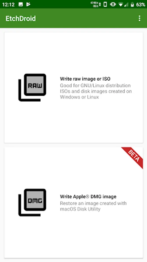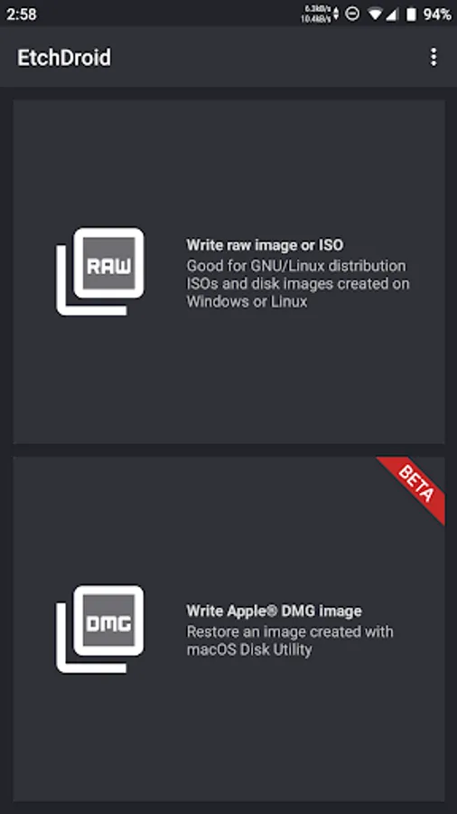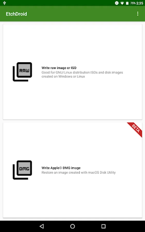 EtchDroid is an open-source application that helps you write images to USB drives.