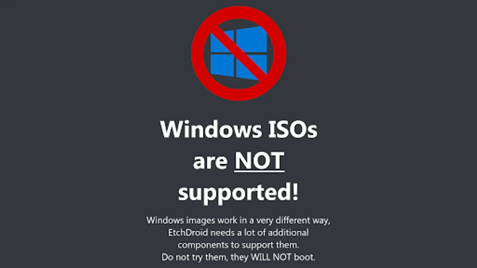 Windows installer ISOs are **NOT** supported!