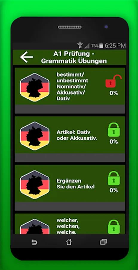Through the app " A1 Examination Grammar Exercises " you can find a lot of information about the German language.