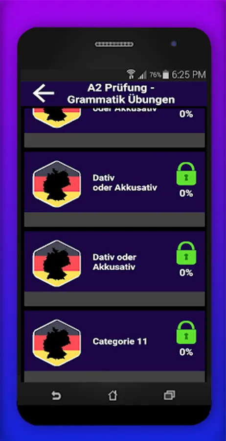 Through the app " A2 Examination Grammar Exercises " you can find a lot of information about the German language.