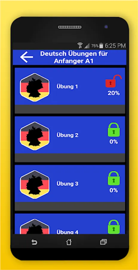 The app "German exercises for beginners A1" is one of the best-known learning apps for German and has been awarded several times in the past as "Best App of the Year". In the app you will not be bothered by advertising or microtransactions and can concentrate fully on learning.