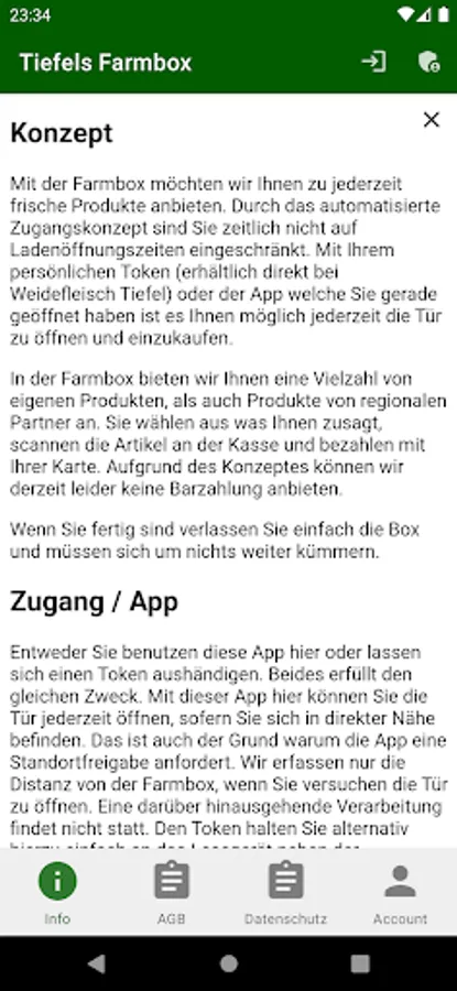 Tiefels Farmbox is a 24/7 open container which makes available a selection of fresh, local and organic groceries to you. Tiefels Farmbox is located in Seukendorf near Nuremberg. All you need is a keyfob or this app to open the container whenever you want. You can then get whatever you want and pay by card.