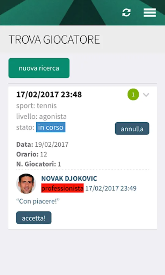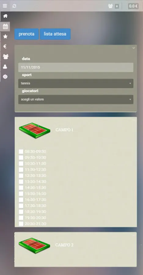 Application for the online booking of fields dedicated to the club ASD Rowing Casale