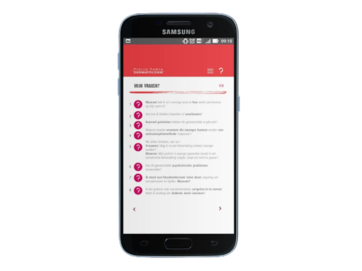 Through this app you will find an answer to the 25 most frequently asked questions about your oral acne treatment.