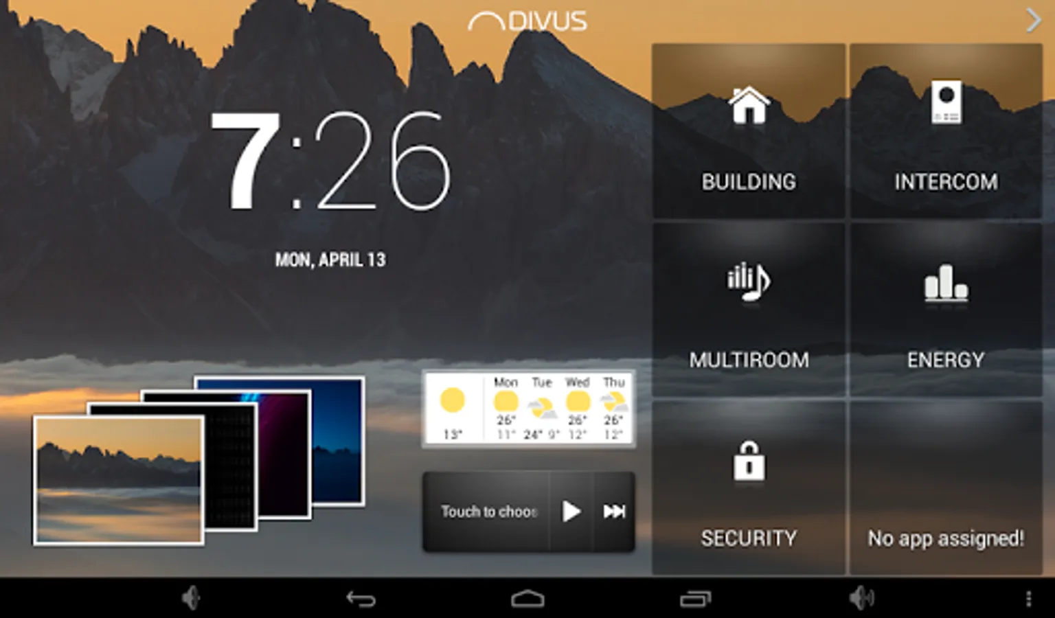 The DIVUS LAUNCHER app is the main app of DIVUS TOUCHZONE and can be understood as start screen / main graphical interface of the product.