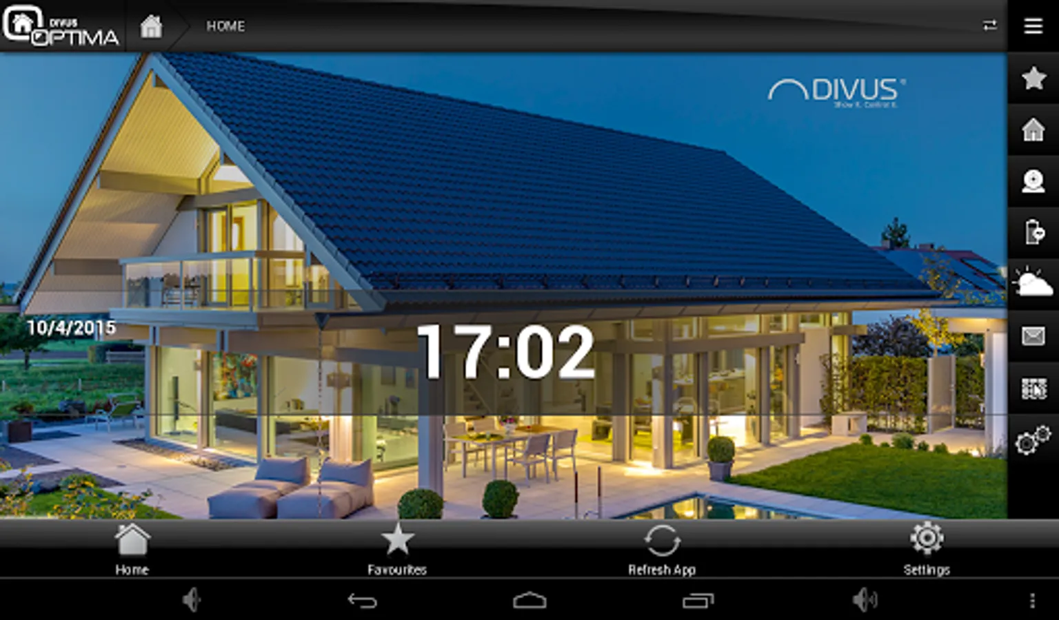 With the DIVUS OPTIMA app you can control your home automation system even when you are on the road. Use your Android device in order to supervise and control the functions of your home via Wi-Fi or the mobile network. The app acts as client software that connects to your DIVUS KNXCONTROL device and thereby gives you access to your KNX system.