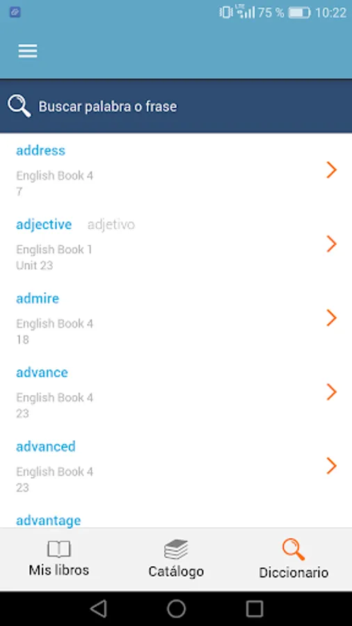 - Our app contains a useful dictionary in which you can find words in your book and jump immediately to the right place in order to practice them!