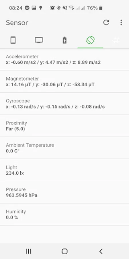 – Memory: Total and available RAM, as well as Storage information about your device.