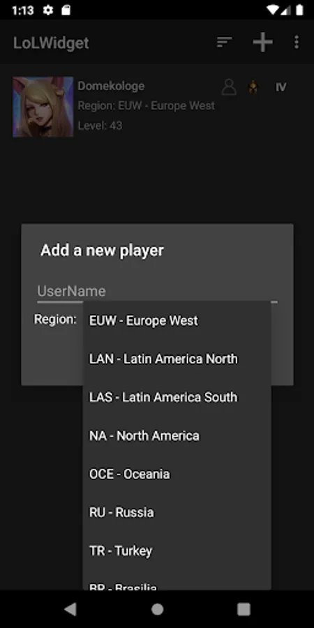You only need to add the Username from the LoL player and choose the Region.