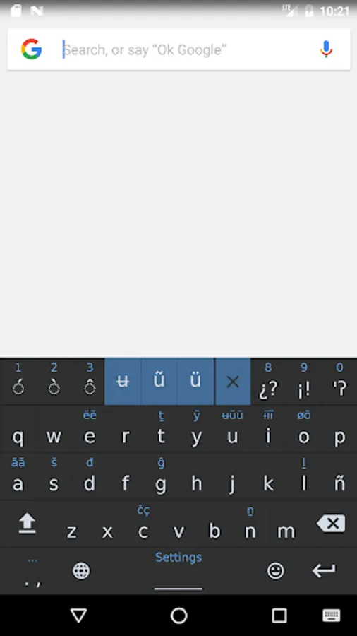 The keyboard offers familiar Spanish and Portuguese layouts and thus is usable for casual writing of Spanish and Portuguese too. On top of this it offers sets of special characters used in various native languages. Those characters are grouped under keys according to graphical or phonetic resemblance and are accessible after long press on the key. Long press on the Space bar brings forth the options, where you can select your preferred keyboard layout and language to type.