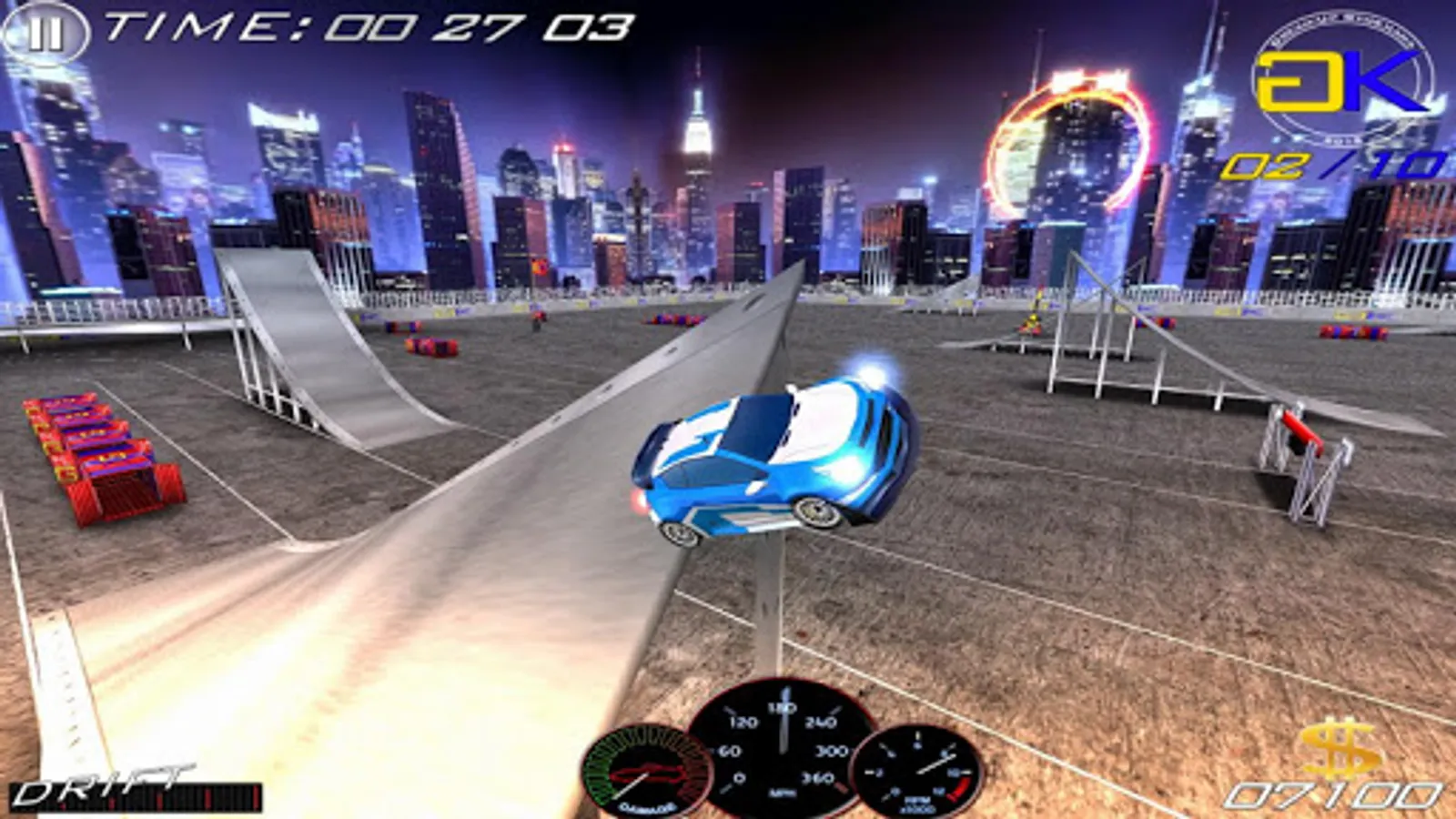 • "GYMKHANA" Learn to mastered your car on unusual tracks! Impressive acrobatics await you: Looping, Steering, Drift and more!
