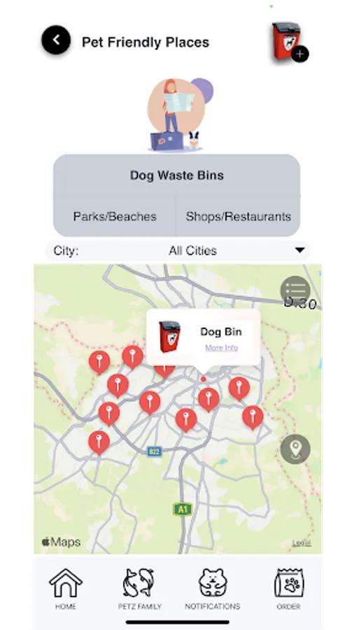 • Petz friendly spaces (Known pet friendly spaces)